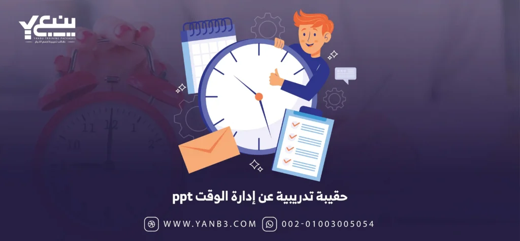 هي أداة قيمة لتطوير مهارات الأفراد في تنظيم وإدارة وقتهم بشكل فعال، حيث تتضمن هذه الحقيبة مجموعة من الاستراتيجيات العملية والأدوات التي تساعد المتدربين على تحديد أولويات المهام، وتخطيط الأنشطة، والتغلب على التسويف.
